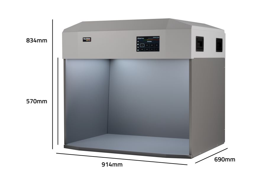 The UltraView light booth for colour assessment has the ability to be programmed with multiple Brand and Retailer light sources with the ability to have up to 8 light sources per switch set.