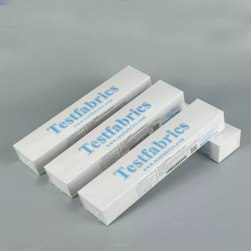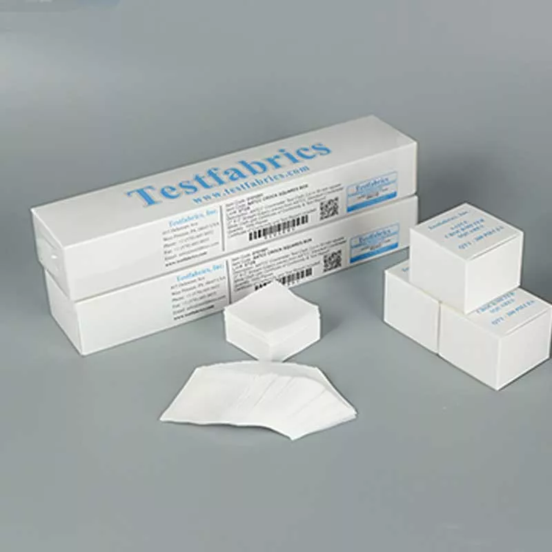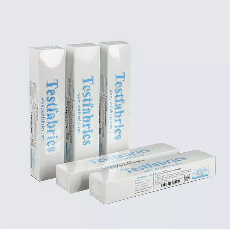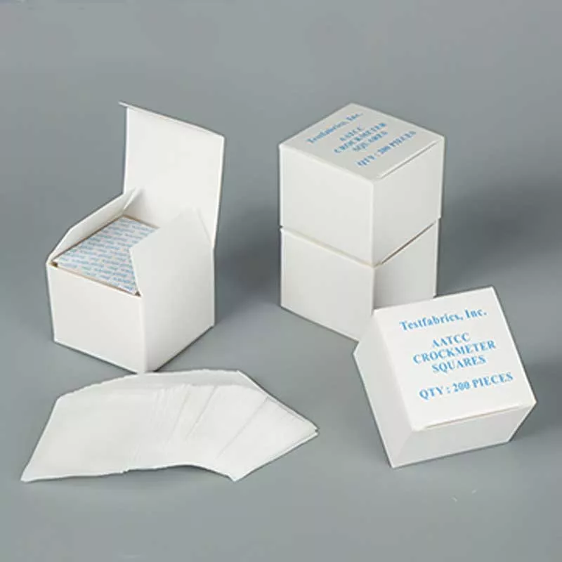 Imported from the United States, also known as small white cloth, rubbing white cloth, and small white cloth for color fastness. Testfabrics Crocking Cloth standard rubbing white cotton cloth with rubbing color fastness tester (instrument), in the dry/wet conditions required by the standard, after setting a certain number of back and forth rubbing, use AATCC standard faded gray card & AATCC standard stained gray card & AATCC The standard nine-level colorimetric card (ISO gray card is specified in some standards) evaluates its fading (discoloration) and staining levels, so as to evaluate its ability to simulate the color of the fabric when it is exposed to other substances. This standard friction cloth is widely used in Japanese Standards (JIS), American Standards, European Standards and Chinese National Standards, or used in adidas, NIKE, Li Ning standards