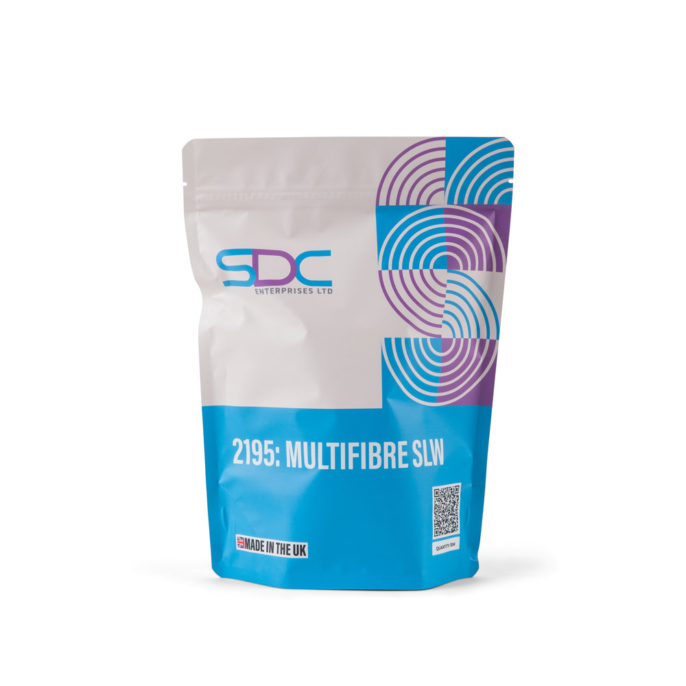 It is produced with a narrow weave construction and contains the following components, Silk, Regenerated cellulose, Cotton, Nylon, Polyester, Acetate and Wool. Multifibre SLW undergoes a rigorous quality control procedure conducted by independent UKAS accredited labs. The testing includes the individual yarns prior to construction and further tests on the finished product. The Multifibre is required to pass these tests before each new batch is considered fit for sale.